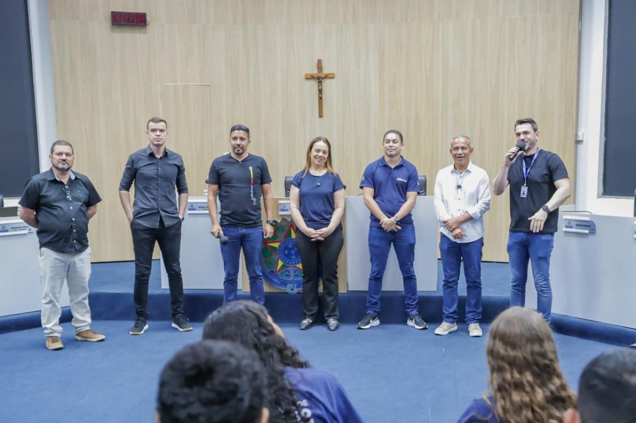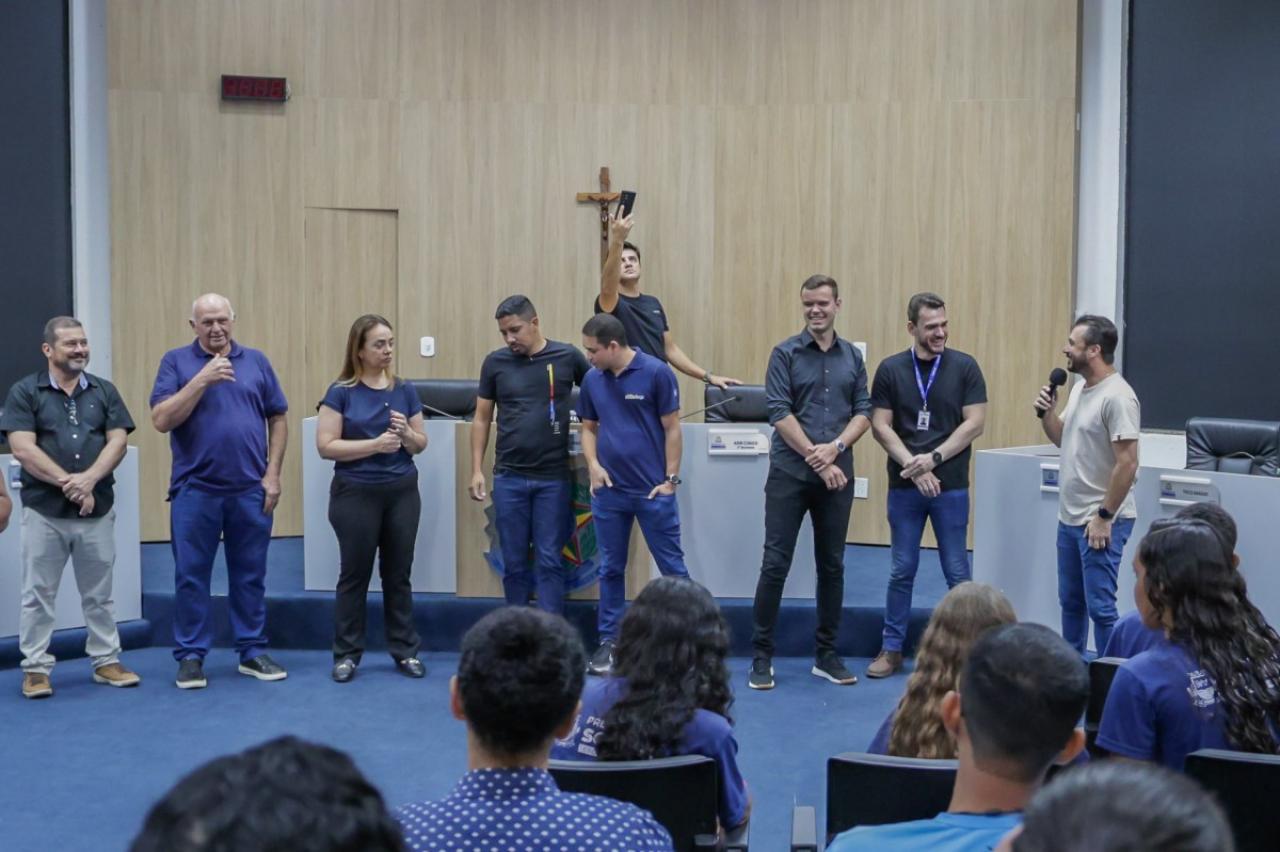 Os estudantes foram recebidos pelo presidente da Casa, Rodrigo Matterazzi, e pelos vereadores Diogo Kriguer, Emerson Farias, Gringo, Brendo Braga, Wanderley e Prof.ª Silvana. Eles conheceram a história do parlamento e as dependências da Câmara Municipal.