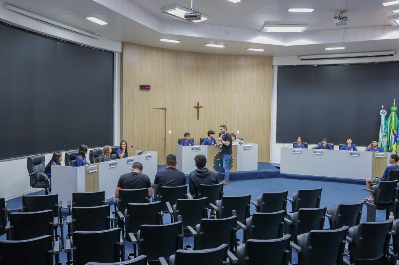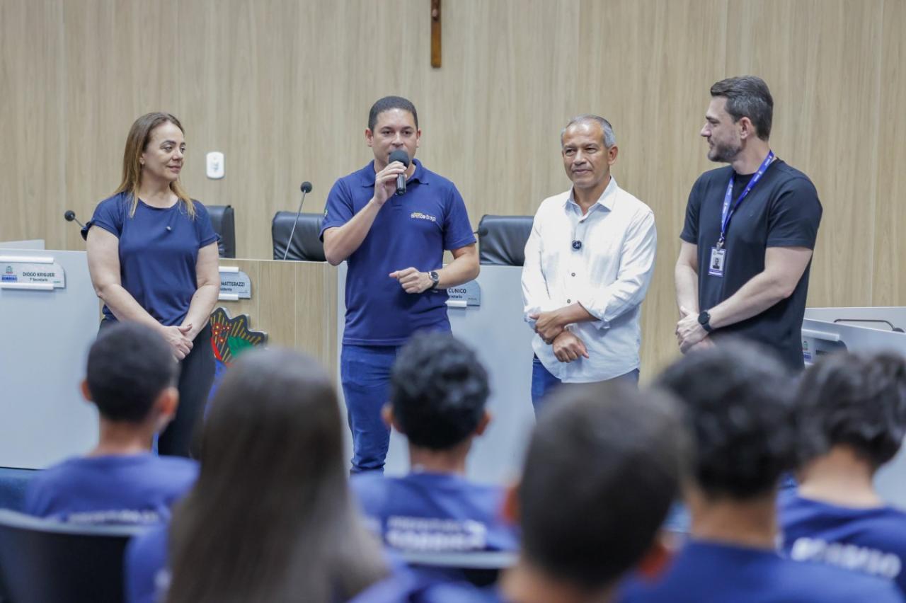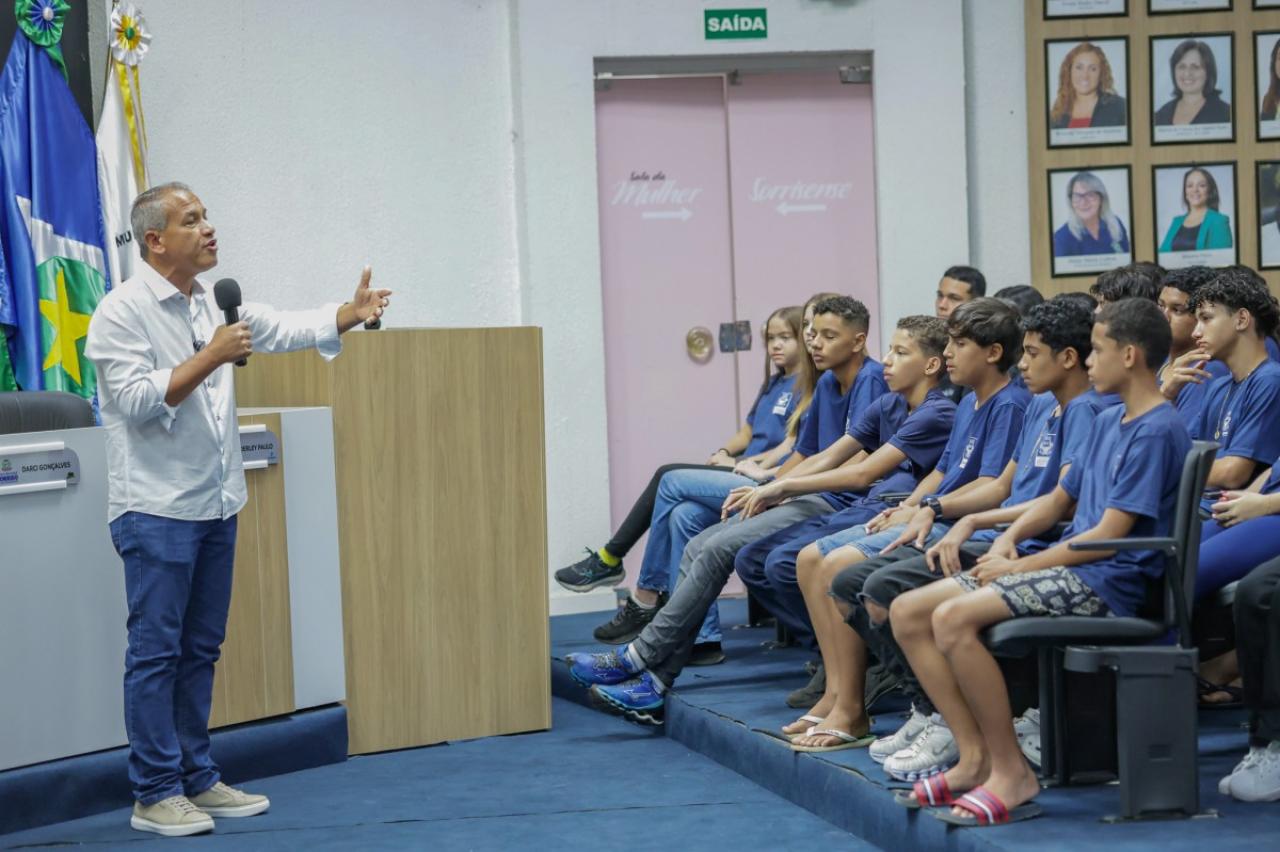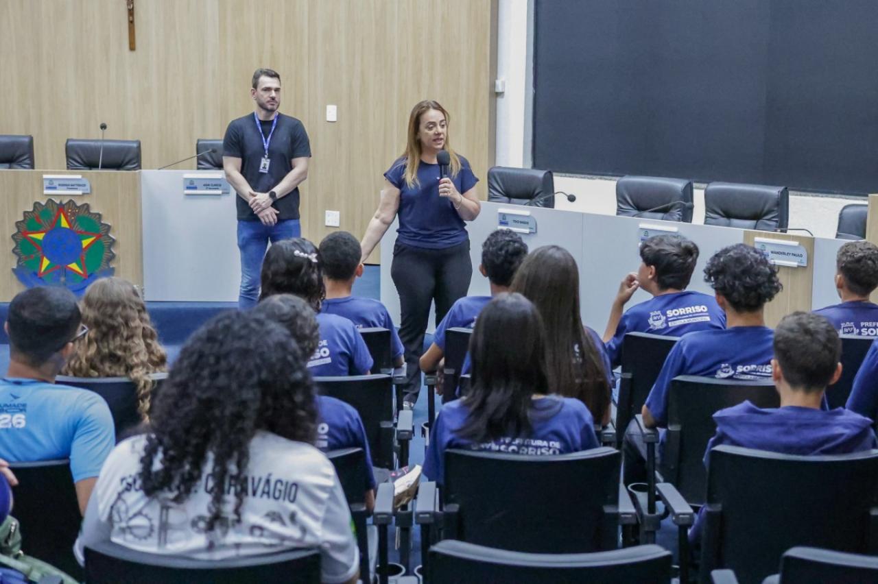 Alunos do 7º ao 9º ano da Escola Municipal Caravágio estiveram nesta manhã na Câmara de Sorriso para conhecer o funcionamento da Casa de Leis.