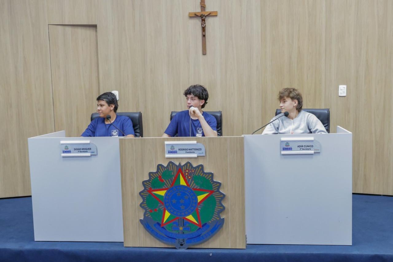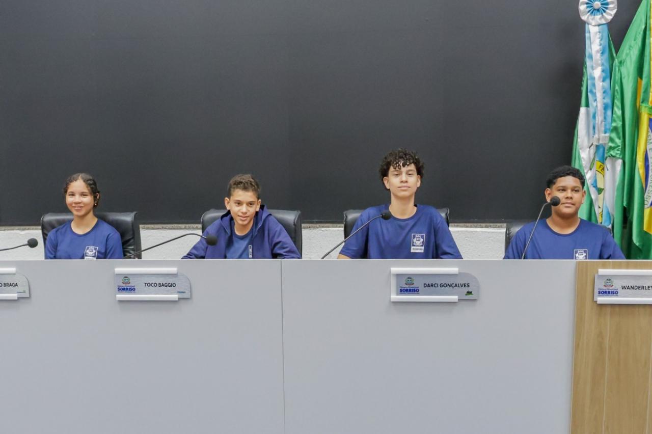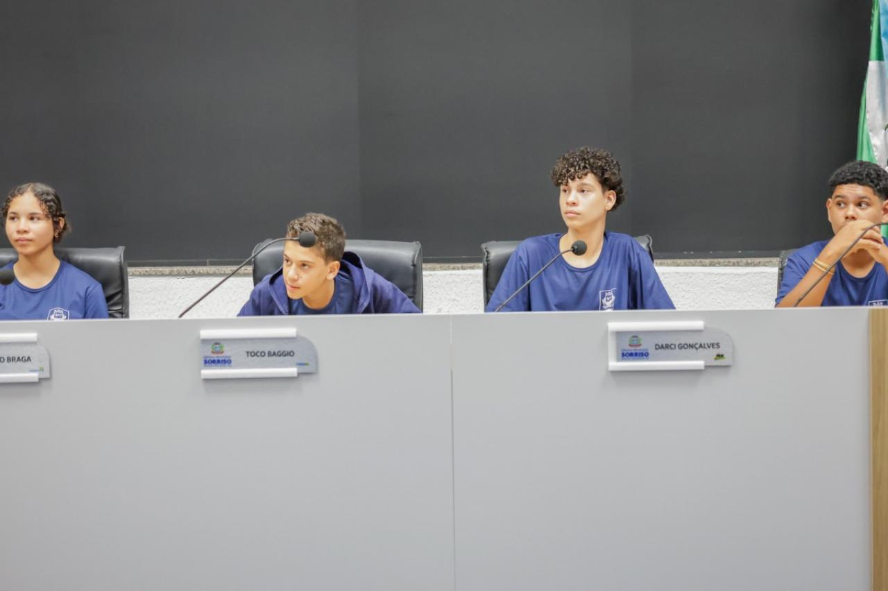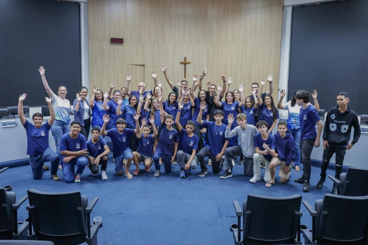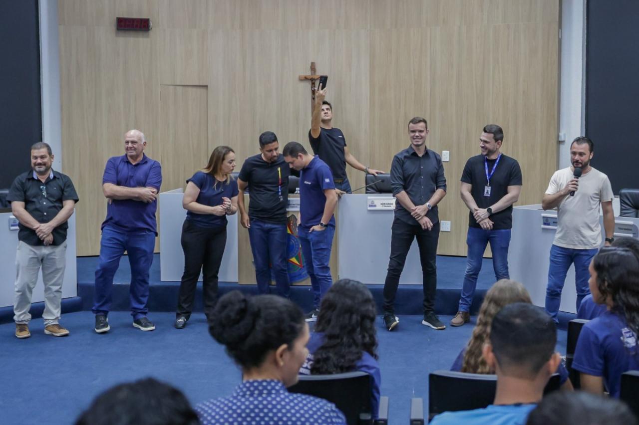 Alunos do 7º ao 9º ano da Escola Municipal Caravágio estiveram nesta manhã na Câmara de Sorriso para conhecer o funcionamento da Casa de Leis.