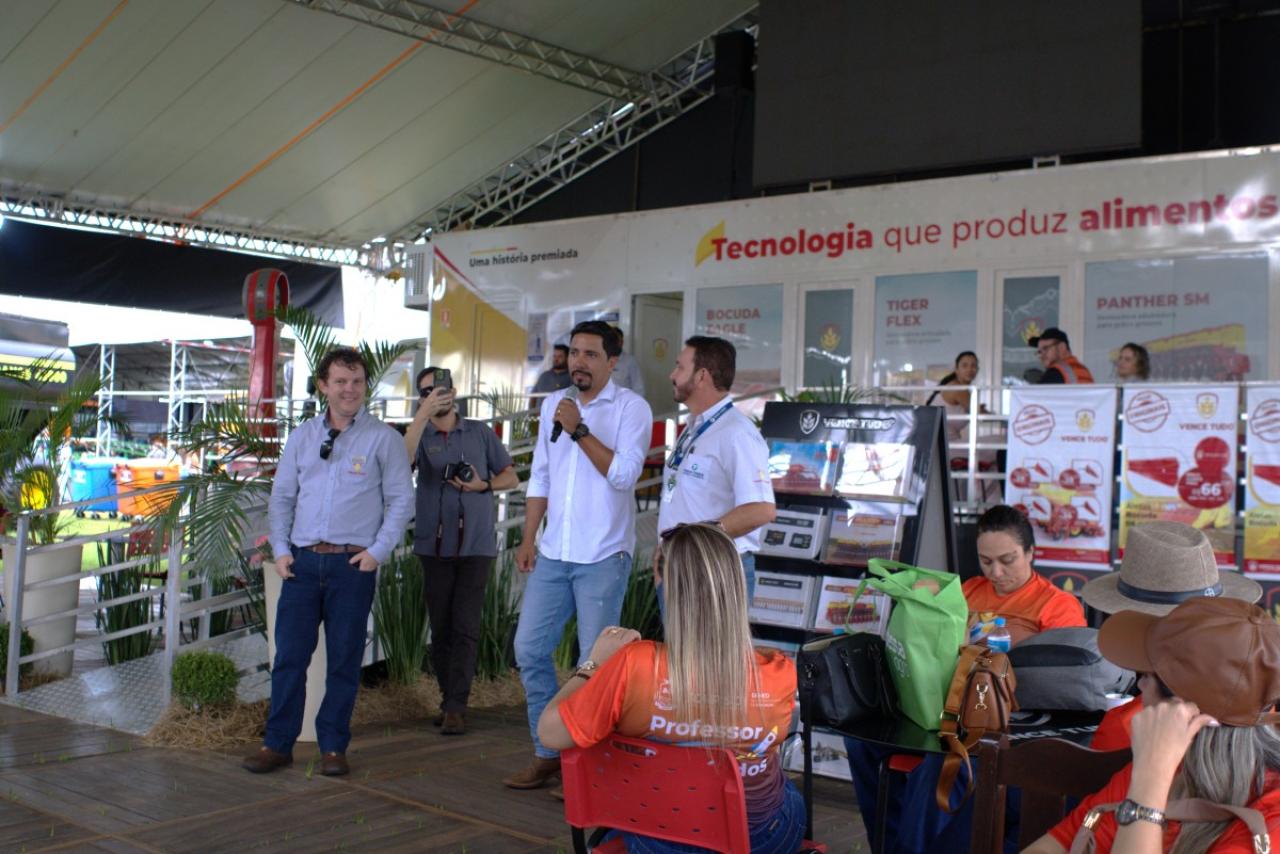 Durante a visita, o grupo esteve nos estandes das empresas Agro Baggio, Águia Representações Comerciais, Agromave e Terra Forte, que atuam no segmento do agronegócio, como comercialização de maquinários, sistemas de irrigação, sementes e equipamentos agrícolas.