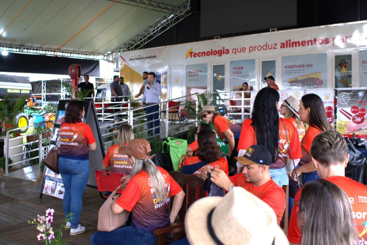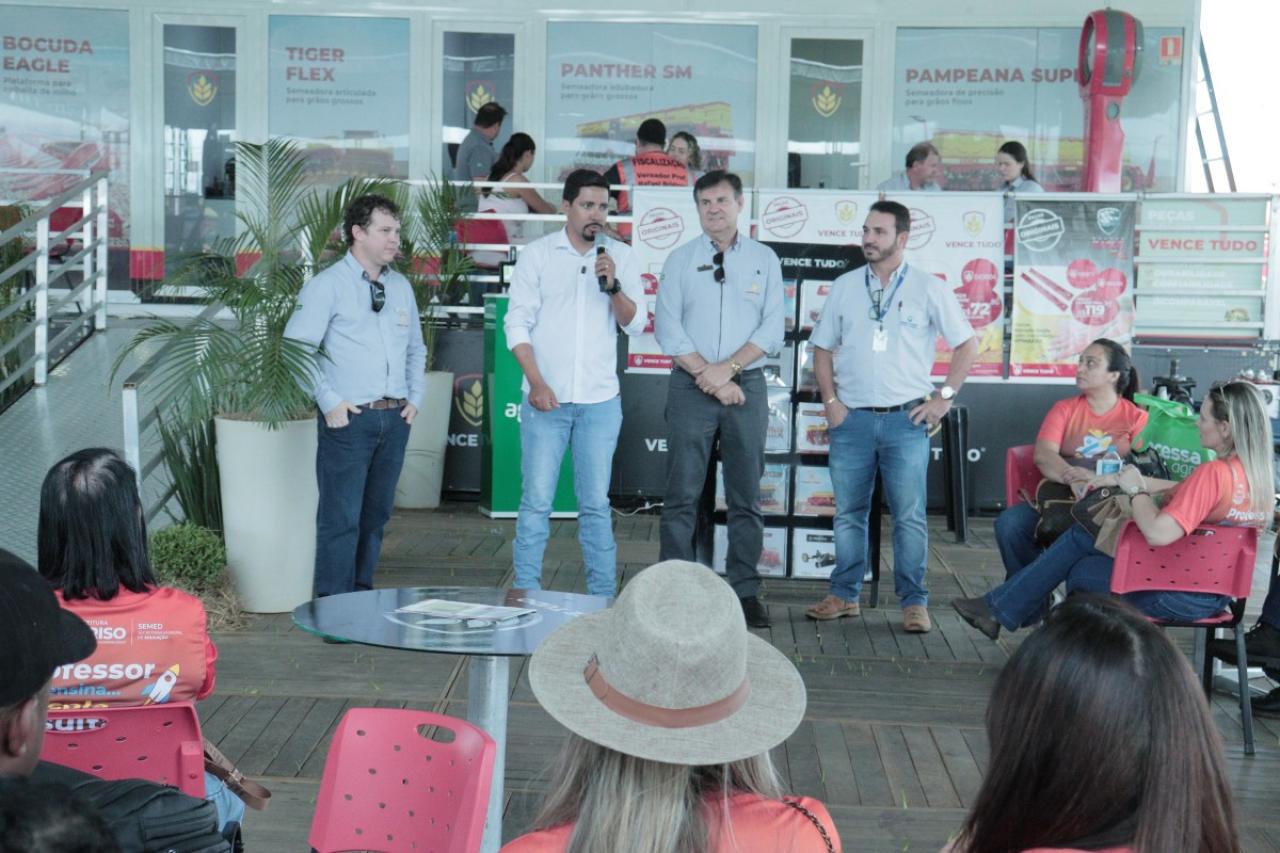 O presidente da Câmara de Sorriso, vereador Rodrigo Matterazzi, acompanhado da secretária municipal de Educação, Adriana Reichert, e de um grupo de professores da rede pública municipal, realizou nesta quinta-feira,26, uma visita técnica ao Show Safra, em Lucas do Rio Verde. A comitiva percorreu estandes de quatro empresas do agronegócio com o objetivo de fortalecer o projeto Agro Educador, que tem como proposta levar conteúdos relacionados ao agronegócio para disciplinas como Ciências e Geografia, aproximando os alunos da realidade econômica e produtiva da região.