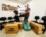 Maurício retirou os kits que incluem bolas de futebol e futsal, bombas de ar, redes e coletes