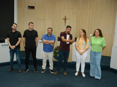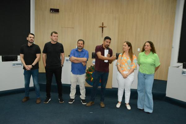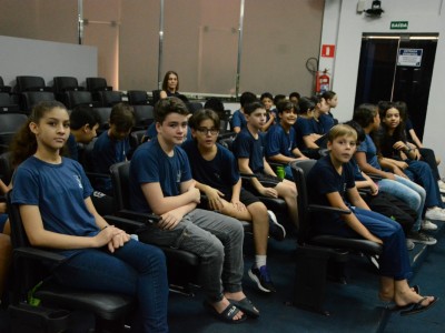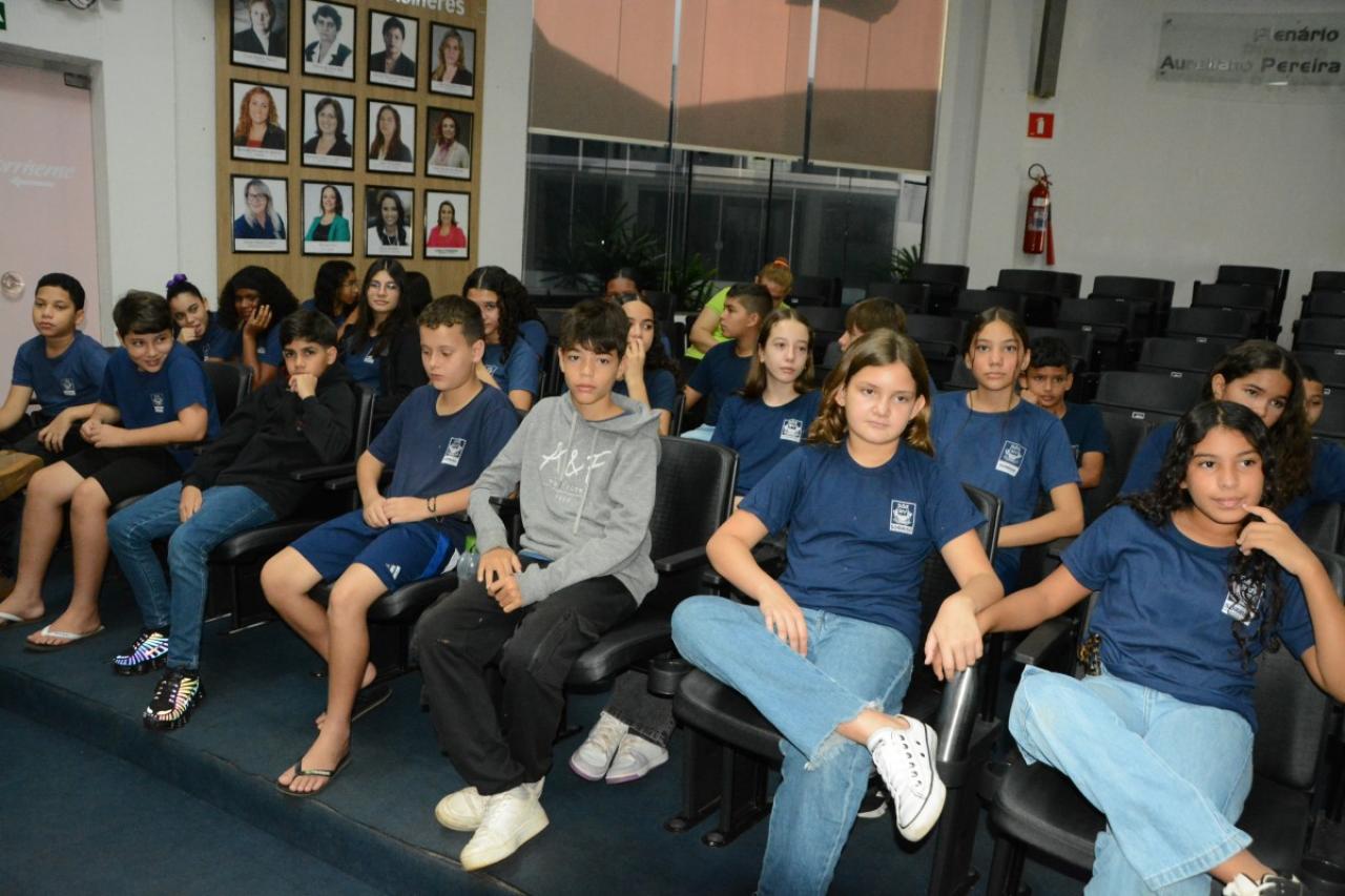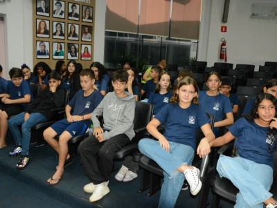 Cerca de 60 alunos do 6º ano da Escola Municipal Aureliano Pereira da Silva participaram na manhã de hoje (1º), do programa “Por dentro do Parlamento”. Os estudantes foram recebidos pelo presidente da Casa, Rodrigo Matterazzi, e pelos vereadores Diogo Kriguer, Emerson Farias, Jane Delalibera e Prof.ª Silvana. Eles conheceram a história do parlamento e as dependências da Câmara Municipal.