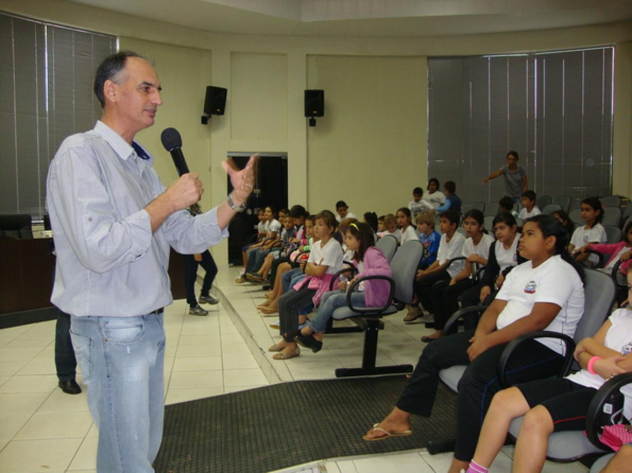 Hoje pela manhã (26.04) a Casa recebeu a primeira visita. Alunos da Escola Municipal Primavera, do distrito de Primavera, foram recebidos no Plenário pela presidente Marilda Savi (PSD), pelos vereadores Hilton Polesello (PTB) e Claudio Oliveira (PR) e por servidores da Casa, onde tiveram uma rápida explanação sobre a história de Sorriso e assistiram um vídeo contando a trajetória do Poder Legislativo.