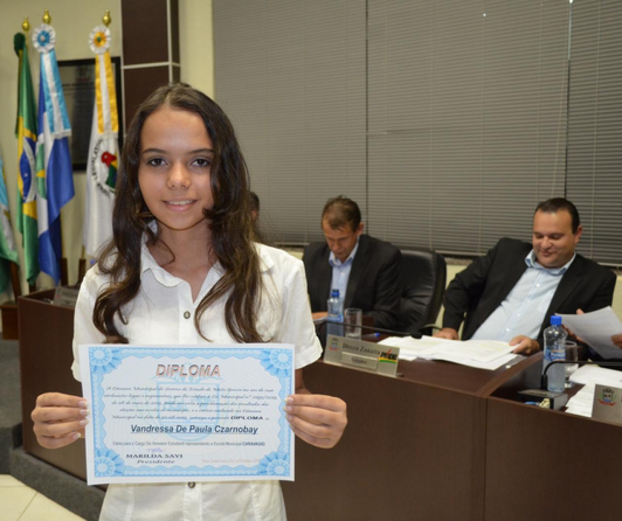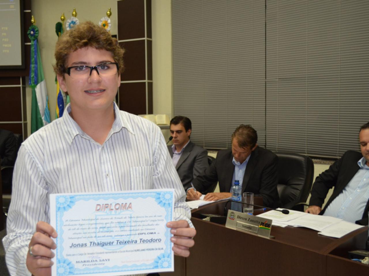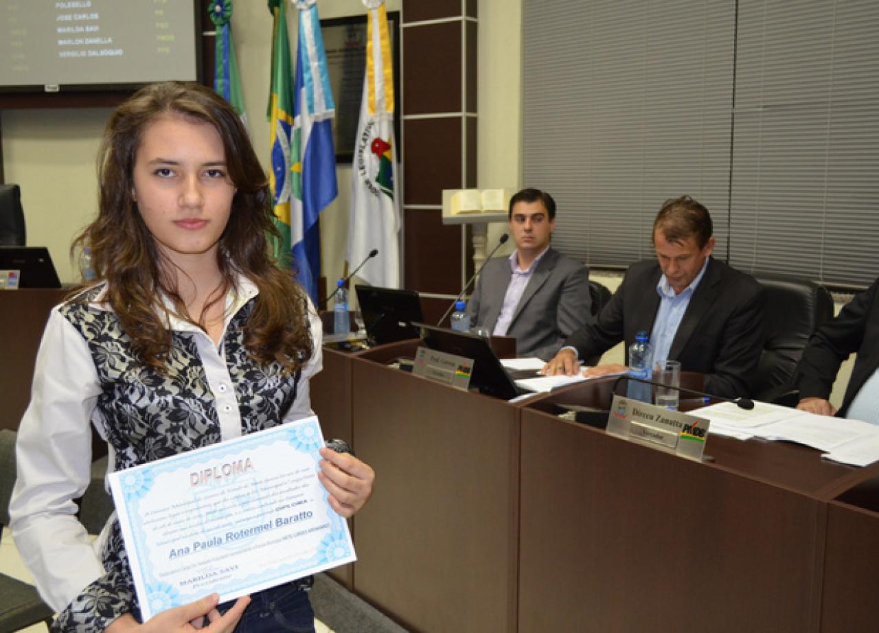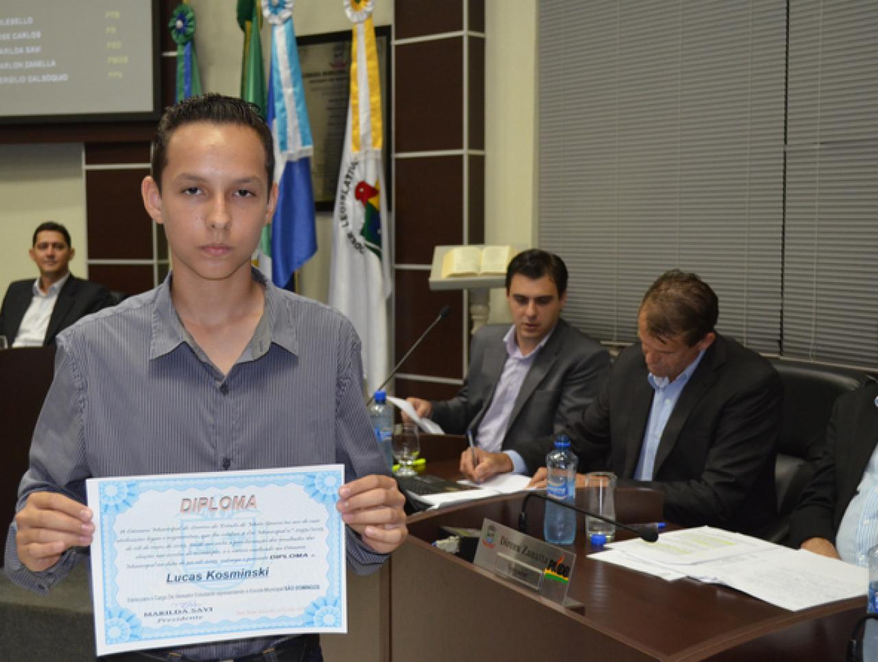 Os 11 vereadores titulares da Câmara Estudantil para o ano de 2013 foram empossados ontem (09.9), durante sessão ordinária da Câmara Municipal de Sorriso. Um estudante suplente também foi diplomado durante a sessão e terá a oportunidade, no decorrer do ano, de assumir uma vaga na Câmara Estudantil.