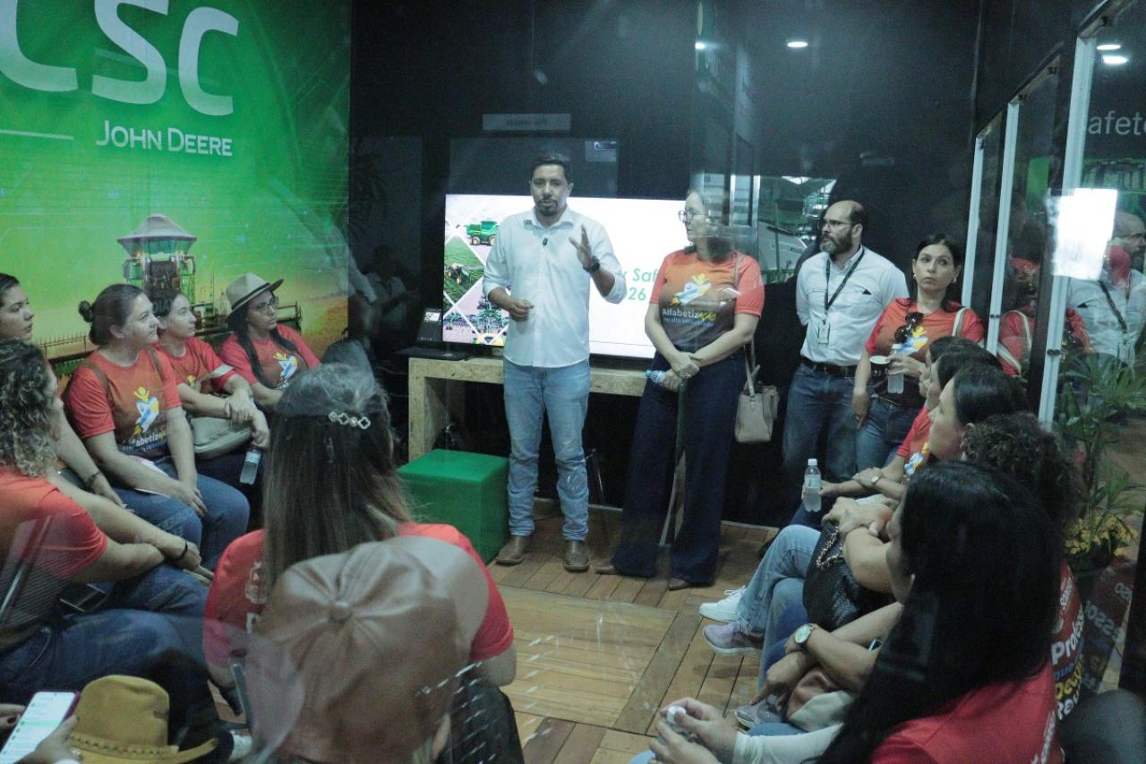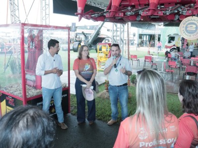 O presidente da Câmara de Sorriso, vereador Rodrigo Matterazzi, acompanhado da secretária municipal de Educação, Adriana Reichert, e de um grupo de professores da rede pública municipal, realizou nesta quinta-feira,26, uma visita técnica ao Show Safra, em Lucas do Rio Verde. A comitiva percorreu estandes de quatro empresas do agronegócio com o objetivo de fortalecer o projeto Agro Educador, que tem como proposta levar conteúdos relacionados ao agronegócio para disciplinas como Ciências e Geografia, aproximando os alunos da realidade econômica e produtiva da região.