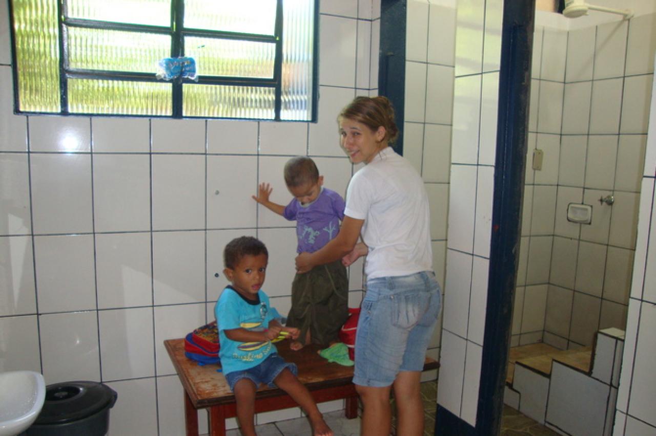 A diretora disse também que faltam trocadores nos banheiros para atender as crianças, o piso é ruim e o parquinho é pequeno demais.